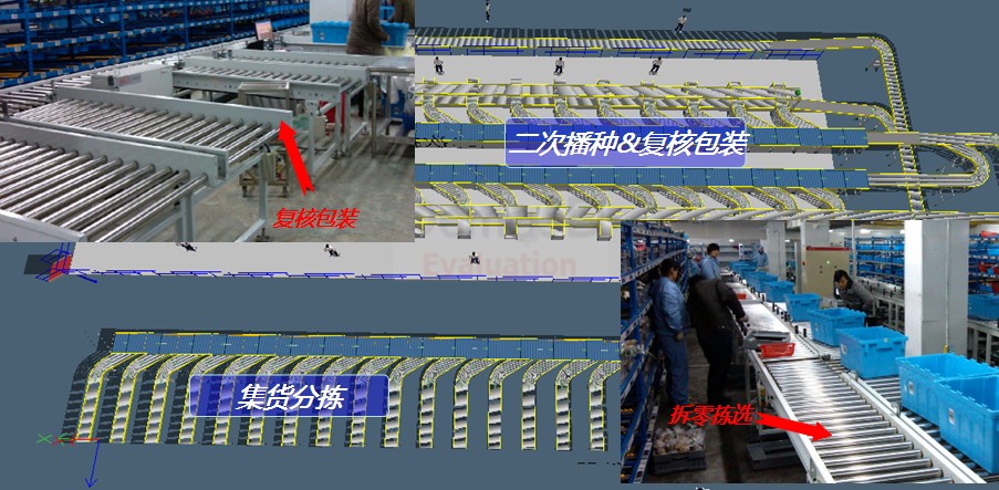 每天處理4萬(wàn)個(gè)訂單/20萬(wàn)行/30萬(wàn)件;生鮮、百貨配送;2、3層提總揀貨,到1層播種,采用高速滑塊進(jìn)行路徑分揀;I期已上線,II期規(guī)劃設(shè)計(jì)中。